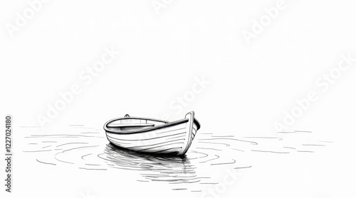 Elegant Black and White Line Art of a Rowboat on a Calm Lake