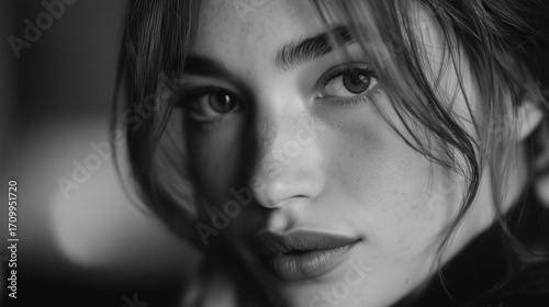 Elegant black and white portrait of woman in profile