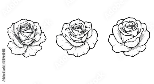 Elegant black and white rose vector illustration for floral designs and prints in line art style