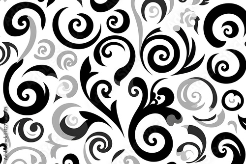 Elegant black and white swirling patterns on a light background, suitable for modern design use