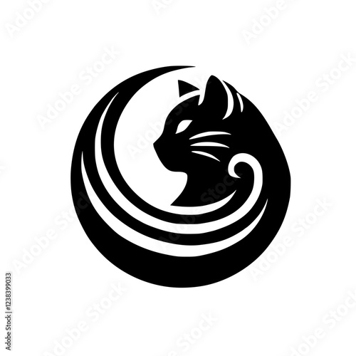 Elegant Black Cat Logo: Minimalist Circular Design, Perfect for Pet Brands, Veterinarians, and Cat Lovers. Stylish and Modern Vector Graphic.