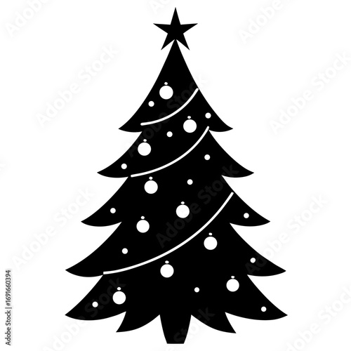 Elegant Black Christmas Tree Illustration with Ornaments and Star Vector Design Perfect for Holiday Season