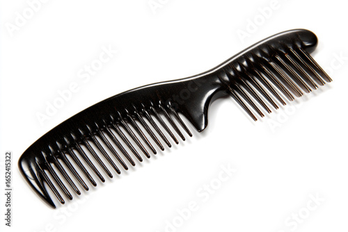 Elegant black comb for grooming and hairstyling on clean white background for beauty use