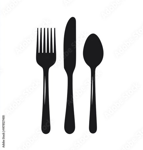 Elegant Black Cutlery Silhouette: Fork, Knife, Spoon