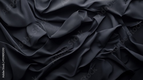Elegant Black Fabric Texture with Soft Creases and Flowing Drapes