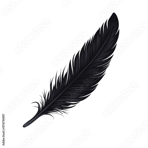 Elegant Black Feather Isolated on White Background for Artistic Use on transparent background