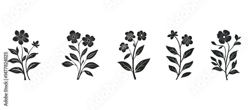 Elegant Black Floral Botanical Silhouettes Set Perfect for Wedding Invitations and Spring Designs