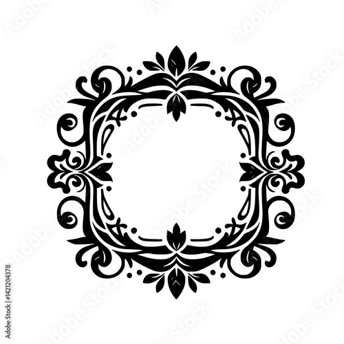 Elegant Black Floral Frame, Vector Illustration, Isolated on White