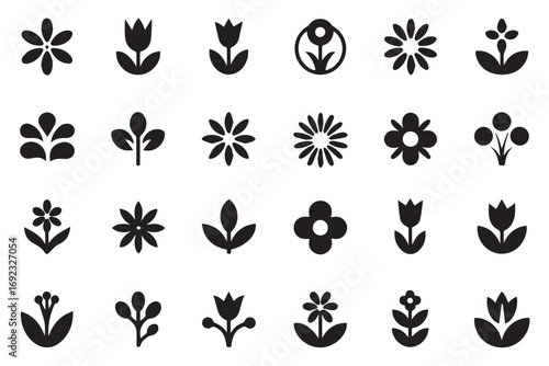 elegant black floral icon collection vector flower shapes for decorative patterns and logos ai eps jpeg png