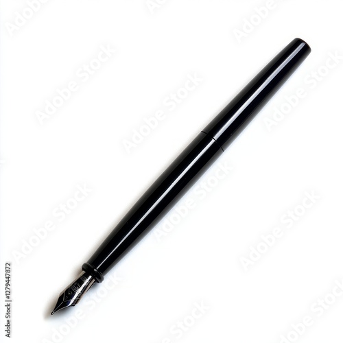Elegant Black Fountain Pen Resting on White Surface Ready to Ink Creative Ideas