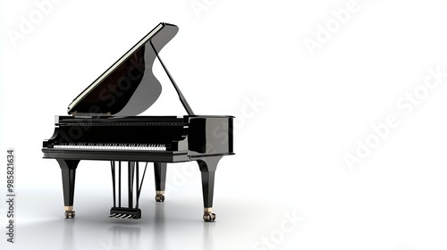 Elegant Black Grand Piano Isolated on a Pristine White Background: A Majestic Display of Classical Musical Artistry and Acoustic Excellence