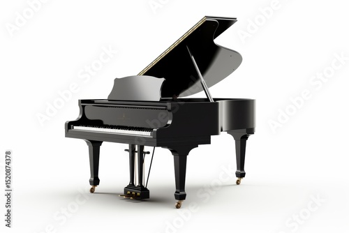 Elegant black grand piano showcased in a well-lit room with a sleek design