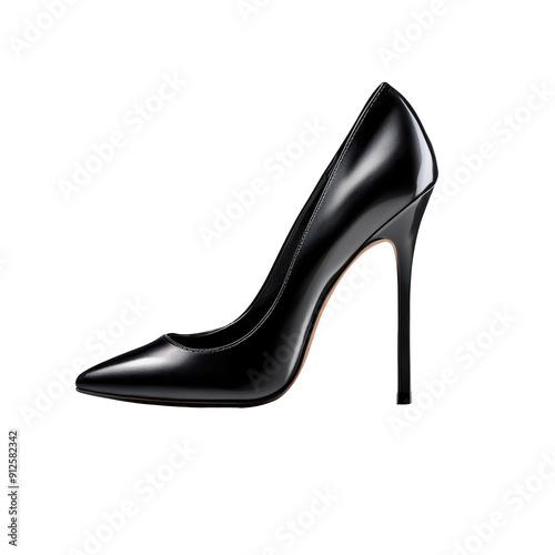 Elegant black high heel shoe featuring a sleek design and glossy finish, perfect for formal occasions and stylish ensembles.