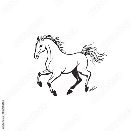 Elegant Black Horse in Motion Artistic Line Drawing
