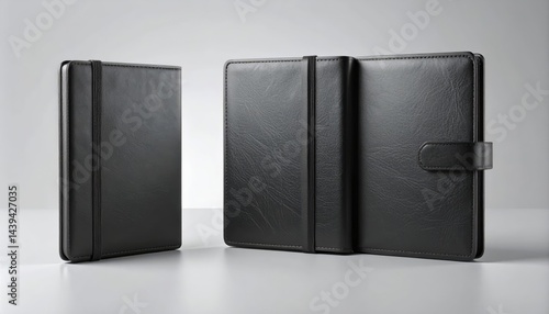 Elegant Black Leather Notebook Mockup Two Views Stylish Closed Open Design