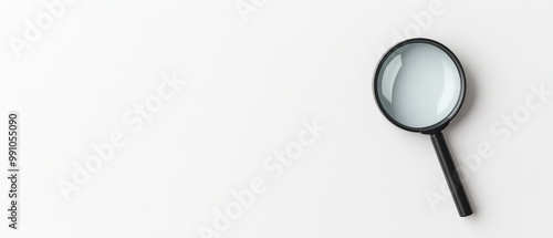 Elegant Black Magnifying Glass on White Background - Minimalist Focus and Clarity Concept
