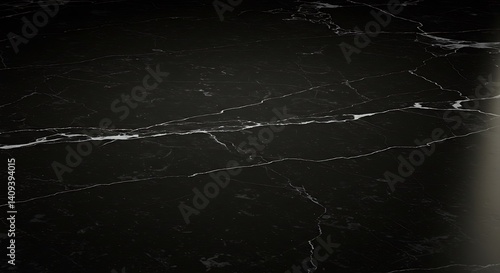 Elegant Black Marble Texture Background with White Veins and Smooth Surface