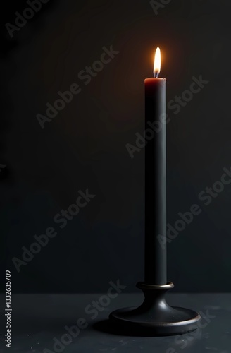 Elegant black mystic candles, casting a soft glow in a minimalist style on a black background.