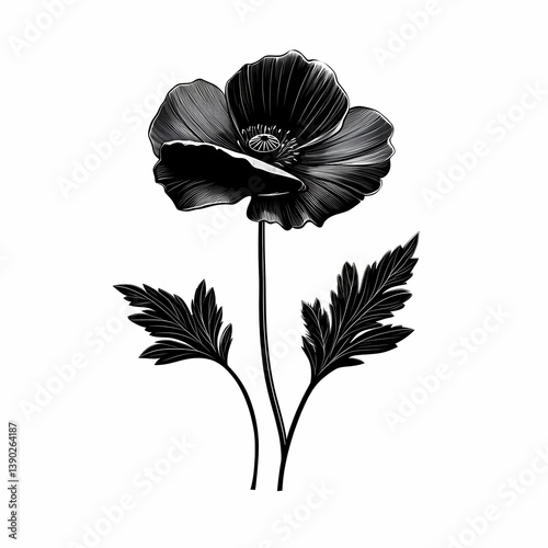 Elegant Black Poppy Floral Design: Minimalist Botanical Artwork in Monochrome