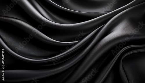 Elegant Black Satin Fabric Ripples with Soft Waves, Evoking a Mesmerizing Visual Poetry of Texture and Movement.