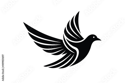 Elegant black silhouette of a dove in flight