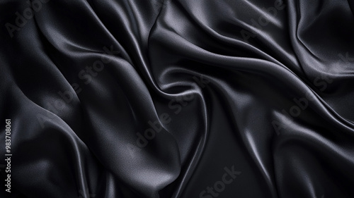 Elegant black silk fabric draped artistically on a dark background for textile design