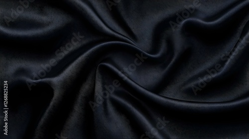 Elegant Black Silk Fabric With Smooth Waves and Rich Texture