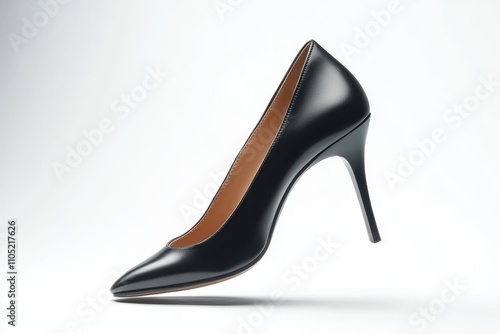 Elegant black stiletto high heel shoe Isolated on a white background