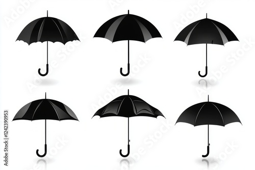 Elegant Black Umbrella Illustrations Set - Rain Protection Design