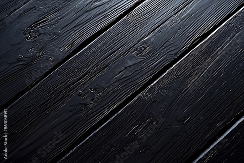 Elegant Black Wooden Surface with Textured Grain Patterns