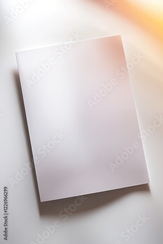 elegant blank trifold brochure laid open on glossy white background with soft lighting enhancing edges
