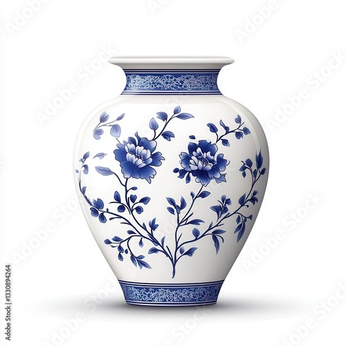 Elegant Blue and White Floral Pattern Vase with Intricate Design