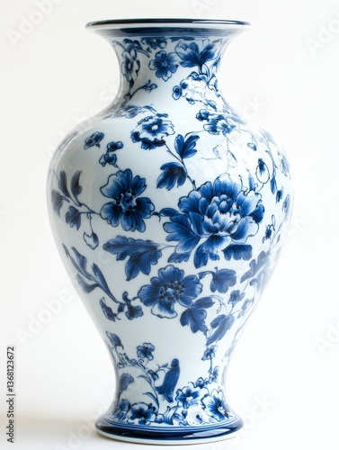 Elegant Blue and White Flower Vase with Intricate Floral Patterns