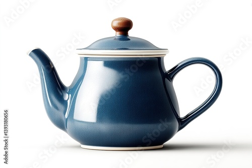Elegant blue ceramic teapot with a wooden handle enhances any kitchen setting or tea time experience