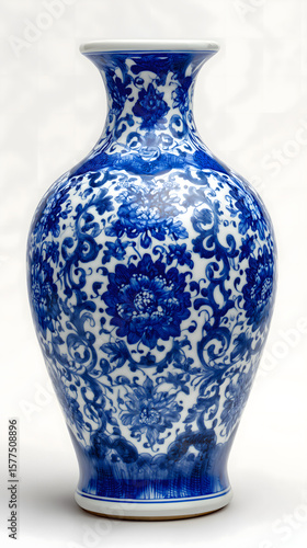 Elegant Blue Ceramic Vase: Traditional Floral Art Pattern for Exquisite Interior Design