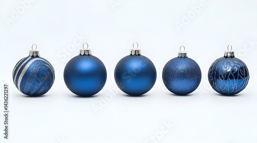 Elegant Blue Christmas Ornaments in a Row on White Background