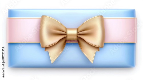 Elegant Blue Gift Box with Pink Ribbon and Golden Bow Design