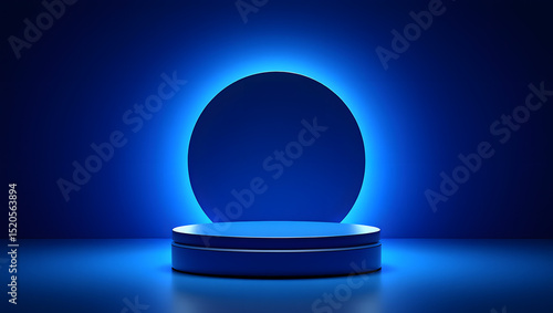 Elegant Blue Product Display Podium with Soft Glowing Circle Backdrop for Modern Presentations and Marketing Visuals Creating a Sophisticated and Captivating Atmosphere for Product Showcases