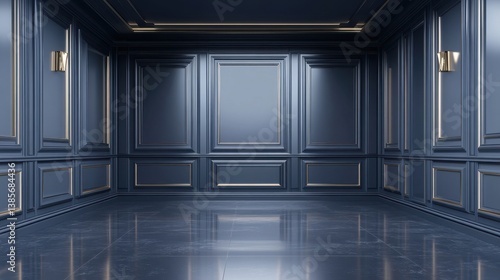 Elegant Blue Room with Modern Wall Panels and Lighting