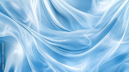 Elegant Blue Satin Fabric. Soft and Glossy Drapery with Wavy Texture