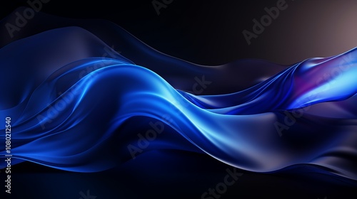 Elegant blue silk flowing gracefully against a dark backdrop in soft lighting. Generative AI