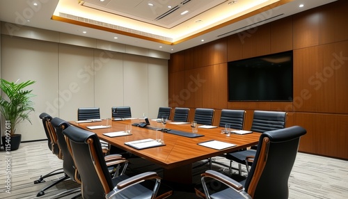 Elegant Boardroom with Modern Design and Stylish Conference Table for Corporate Meetings