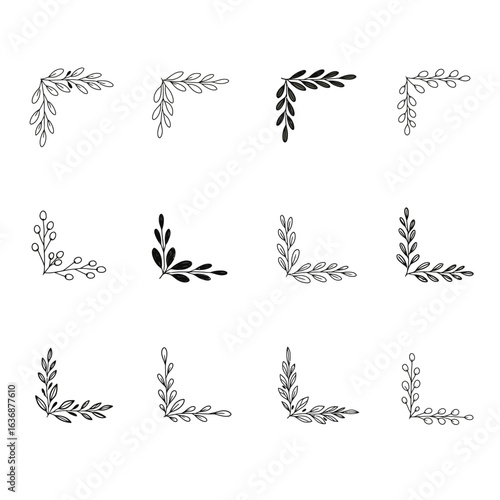 Elegant Botanical Corner Ornaments Vector Collection Featuring Delicate Leaves and Berry Sprigs for Wedding Invitations and Design Elements