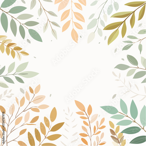 Elegant Botanical Illustration with Delicate Leaves Forming a Beautiful Frame on a Soft, Creamy Background for Various Design Purposes