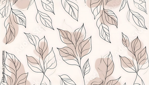 Elegant Botanical Pattern: Delicate hand-drawn leaves and foliage intertwine in a seamless pattern, creating a harmonious display of organic beauty.