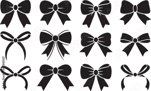 Elegant Bow Collection A Variety of Bow Tie Designs and Ribbon Embellishments for Celebrations and Decorations in Vector Format