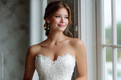 Elegant Bride in Lace Wedding Gown: Romantic Bridal Portrait