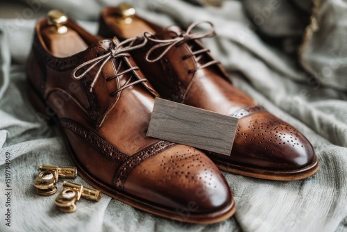 Elegant brown leather shoes displayed on soft fabric fashion photography indoor setting close-up view sophisticated style