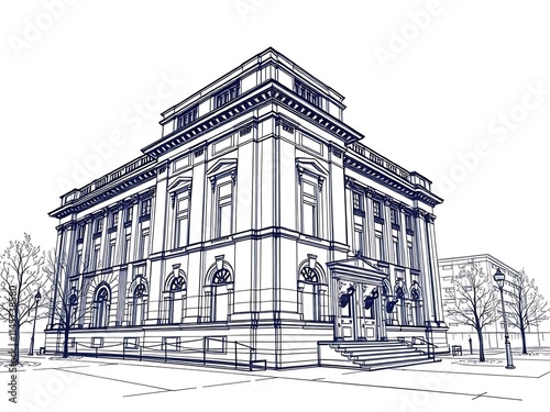 Elegant Building Blueprint: Detailed 3D Render Illustration. AI Generated