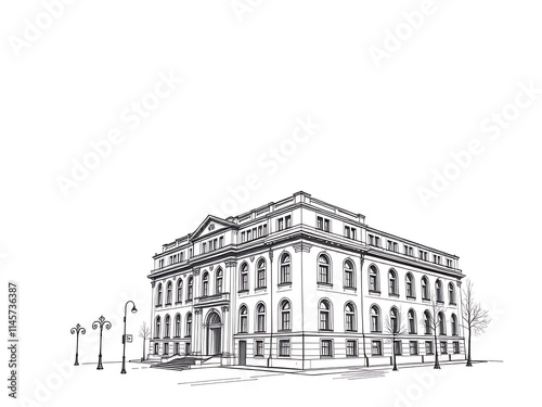 Elegant Building Sketch: Detailed Architectural Illustration. AI Generated